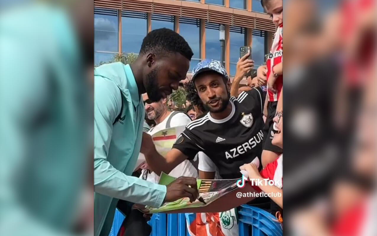 Videoda azarkeşlər İnaki Uliyamsdan avtoqraf alırlar.