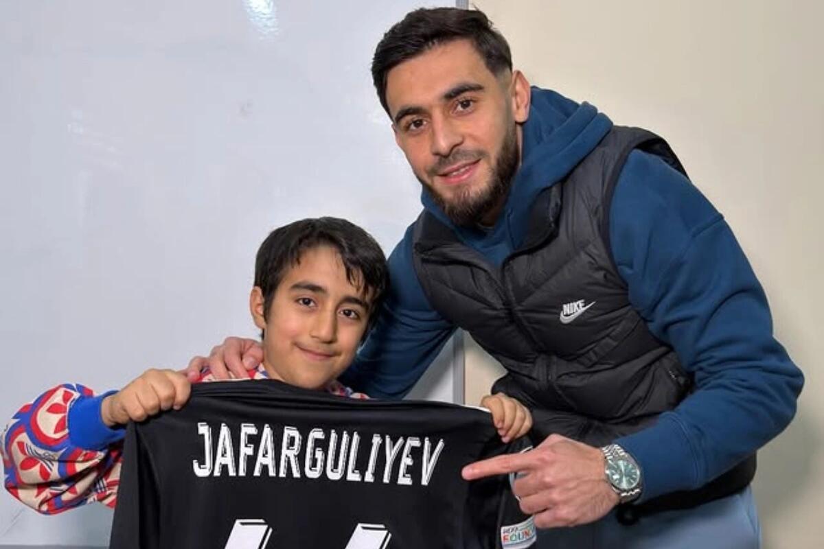 E.Cəfərquliyev azyaşlıya imzalı formasını hədiyyə edib.