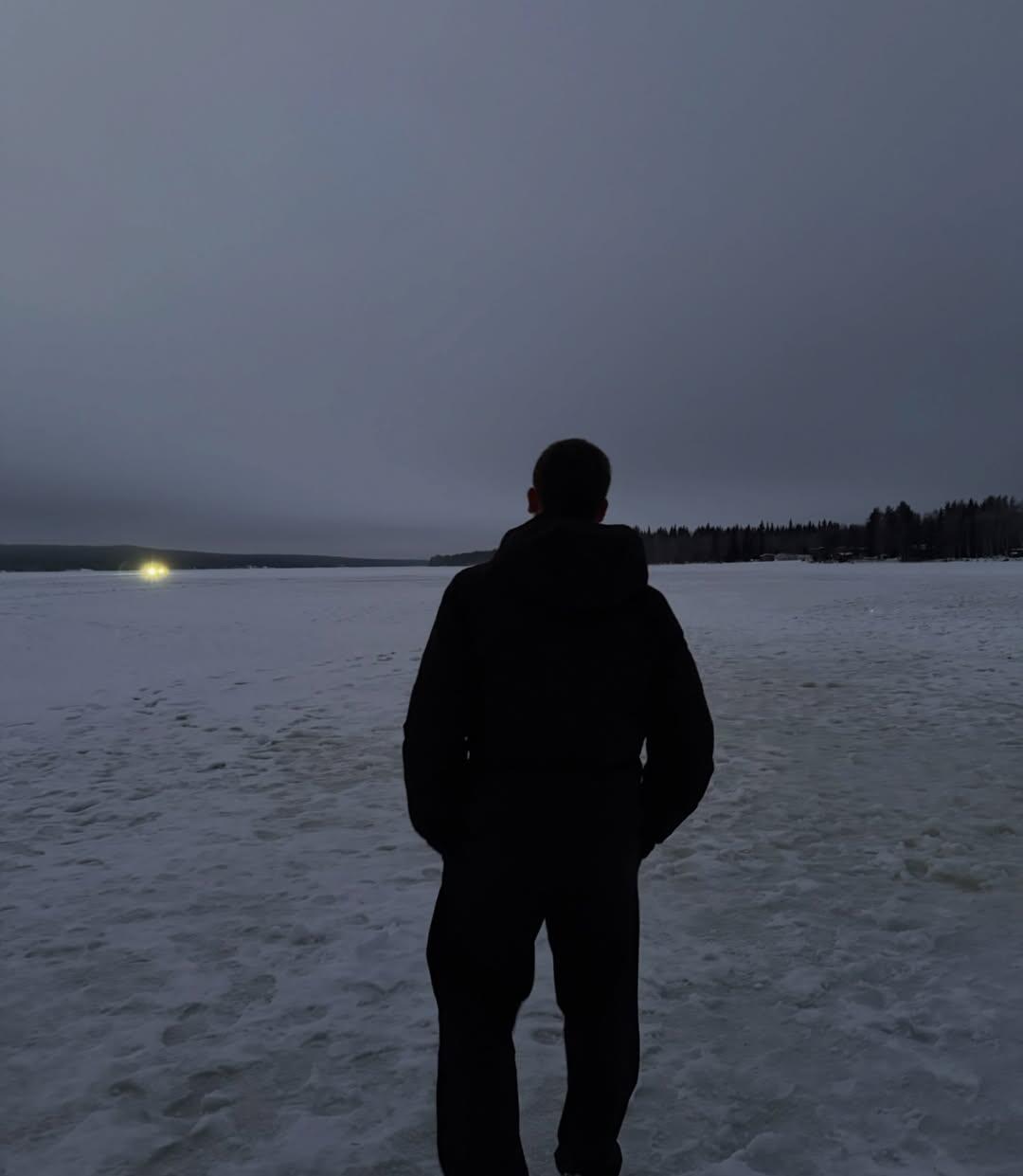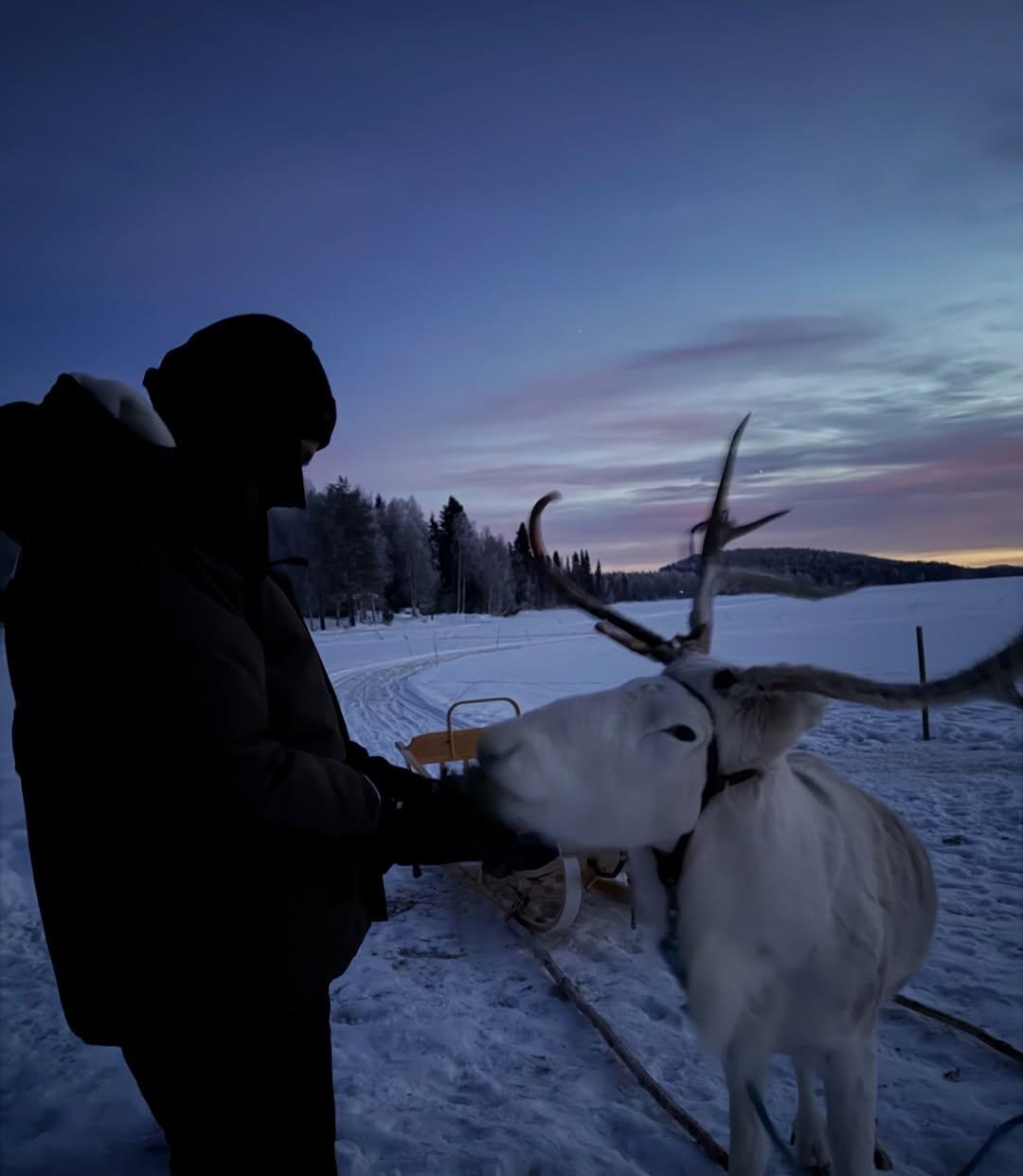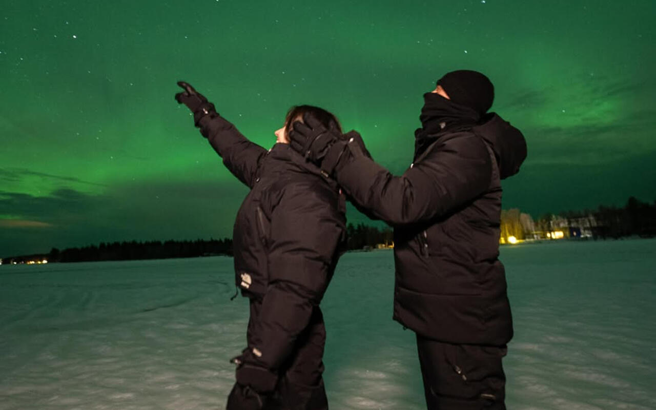 Cütlüyün qarlı bölgədə şimal işıqlarını seyr etdiyi görülür. Paylaşımlar sosial şəbəkələrdə maraqla qarşılanıb.