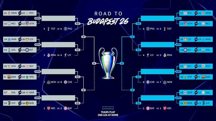 UEFA Çempionlar Liqasında liqa mərhələsi turnir cədvəlində indiki sıralama ilə başa çatarsa, komandaların potensial rəqibləri açıqlanıb.