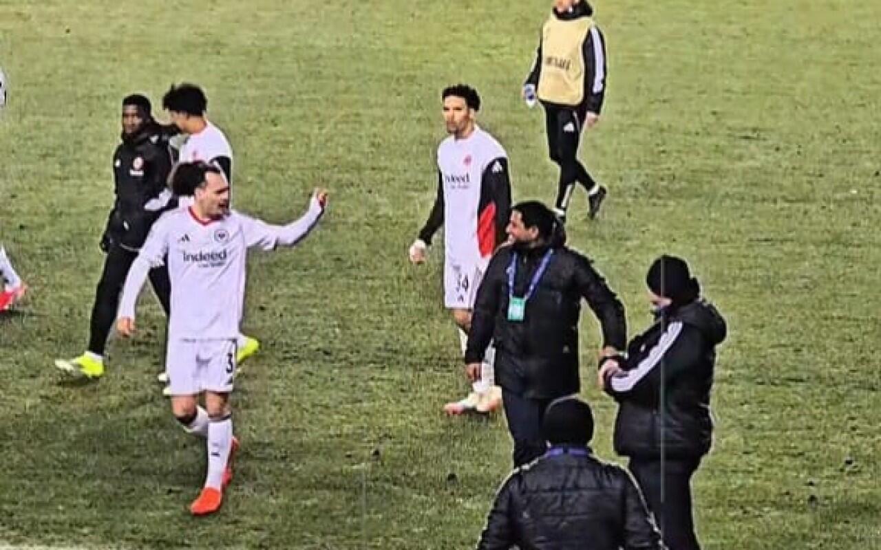 Azərbaycan təmsilçisi 3-2 hesablı qələbəsini qeyd edərkən, alman klubu meydançanı tərk etməyə başlayıb. Bu zaman "Ayntraxt"ın mərkəz müdafiəçisi Arthur Theate əsəblərini cilovlaya bilməyib.