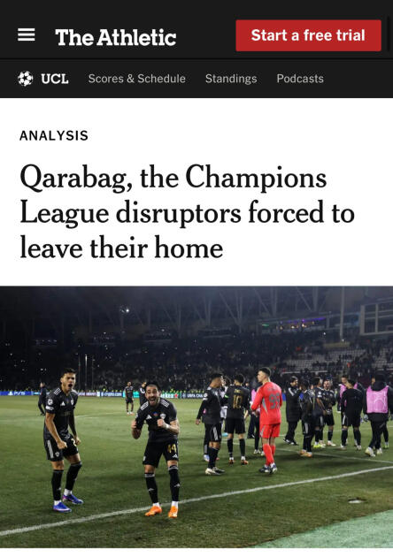Nüfuzlu ingilis idman nəşri "The Athletic" bu mövsüm UEFA Çempionlar Liqasında uğurlu çıxışı ilə diqqət çəkən "Qarabağ" barədə geniş məqalə dərc edib.
