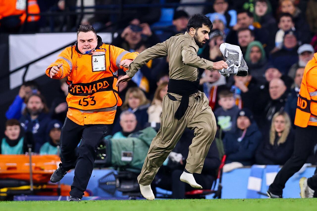 Təhlükəsizlik işçiləri etirazçıları meydandan uzaqlaşdırmaq üçün müdaxilə etdikdən sonra matç təxminən iki dəqiqə dayandırılıb.