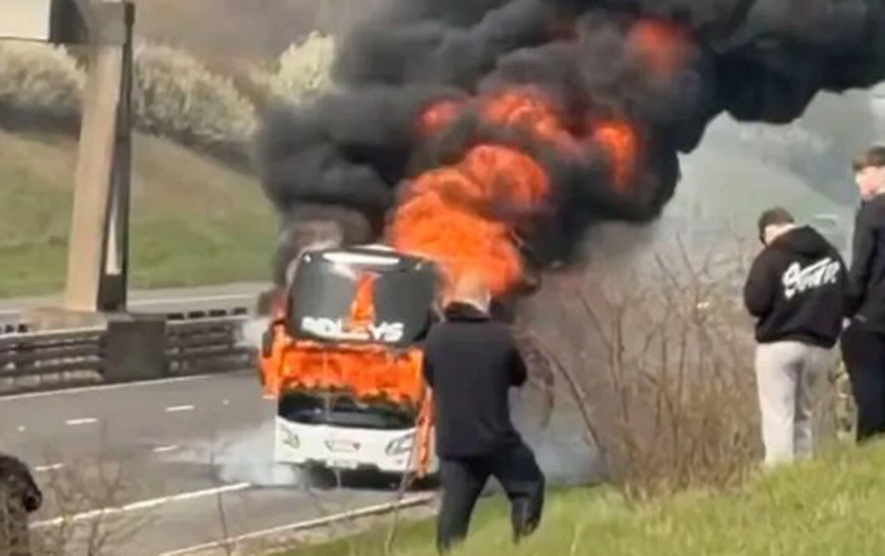 İngiltərədə "Mançester Siti" azarkeşlərini daşıyan avtobus Karabao Kuboku finalına gedərkən yolda alovlanıb.