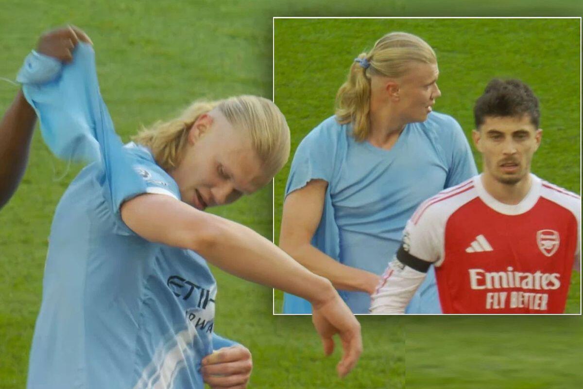 Milli.Az xəbər verir ki, oyunun 65-ci dəqiqəsində "Arsenal"ın müdafiəçisi Qabriel ilə girdiyi ikili mübarizədə alt geyiminin cırılmasına baxmayaraq hakim tərəfindən fol qərarı verilməməsi Haalandı qəzəbləndirib: