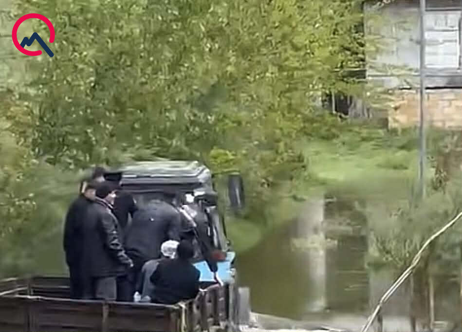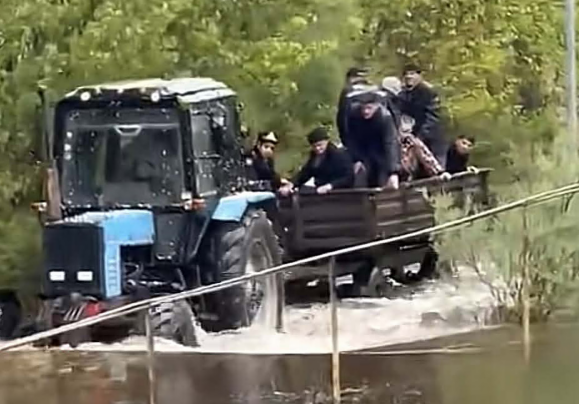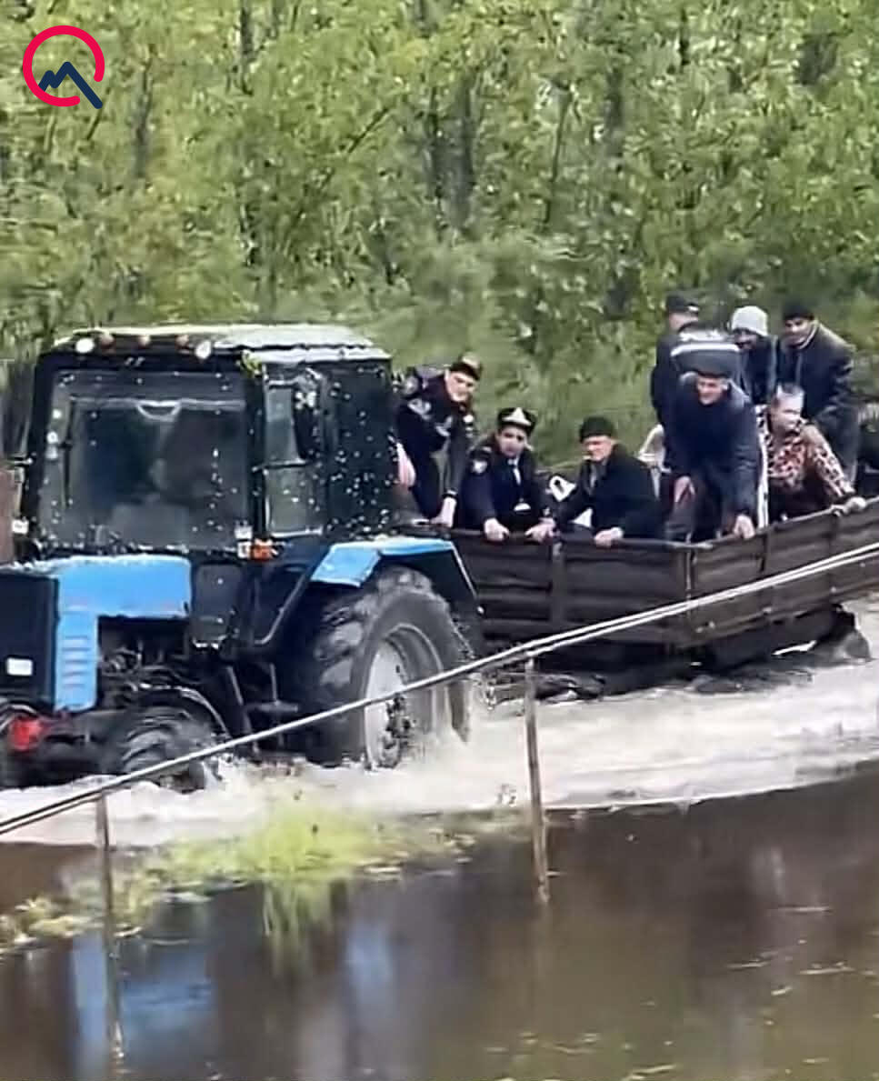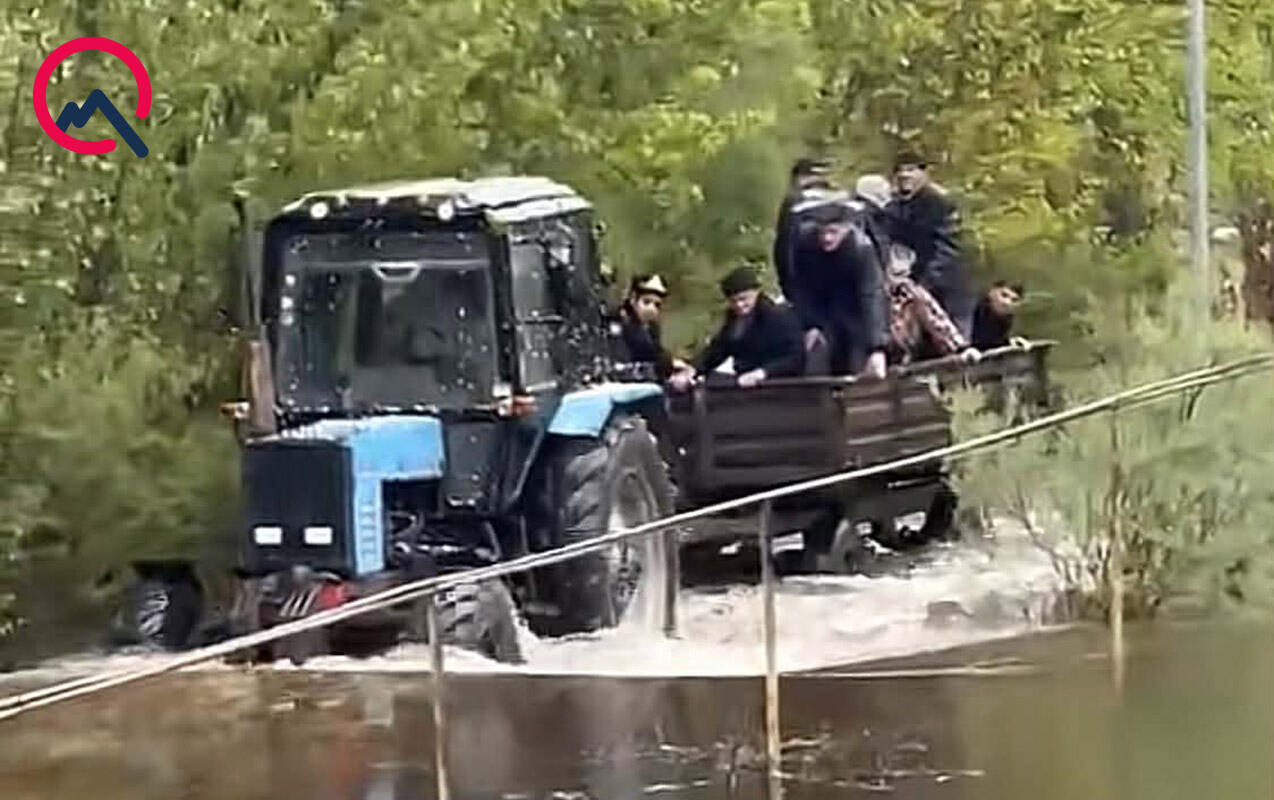 Yol kəsildiyi üçün polis əməkdaşları traktorun qoşqu vasitəsinə əyləşərək vətəndaşlara köməyə gediblər.