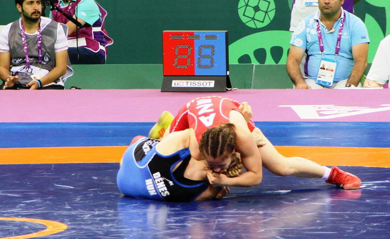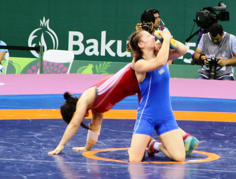 Milli.Az Bakı-2015-in rəsmi saytına istinadən bildirir ki, Avropa Oyunlarının 5-ci günündə qadınlar arasında sərbəst güləş üzrə yarışlar davam edir.