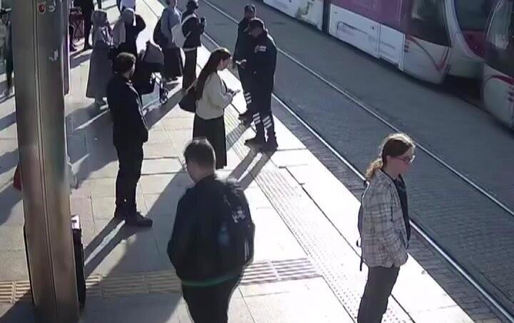 Türkiyədə təhlükəsizlik əməkdaşı gənc qızı tramvayın altına düşməkdən son anda xilas edib
