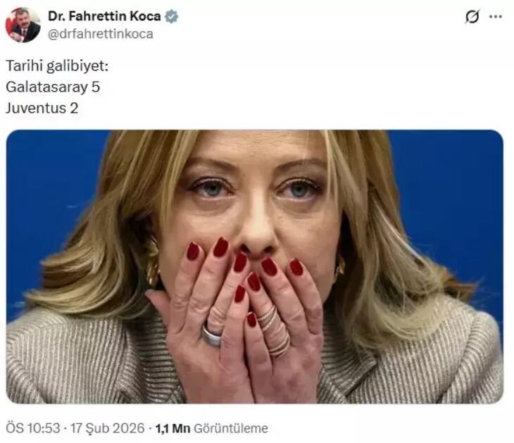 Türkiyənin sabiq səhiyyə naziri Fahrettin Koca "Qalatasaray"ın İtaliya nəhəngi "Yuventus" üzərində 5:2 hesablı möhtəşəm qələbəsindən sonra sosial şəbəkə paylaşımı ilə gündəmə gəlib.