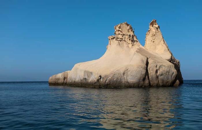 Milli.Az xəbər verir ki, köhnə Foçaya getməzdən əvvəl adını ən çox eşidəcəyiniz yerlərin başında Siren Qayalıqları gəlir. Orak adasının şimal-qərbində yerləşən bu vulkanik qayalıqlar görünüşü ilə Kapadokyanın pəri bacalarını xatırladır.