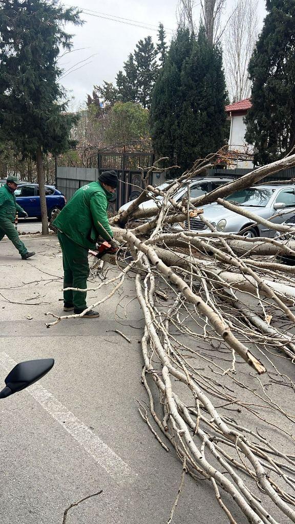 Sınan ağaclar və qırılan budaqlar birliyin növbətçi briqadaları tərəfindən operativ şəkildə görütülüb, ərazi təmizlənib.