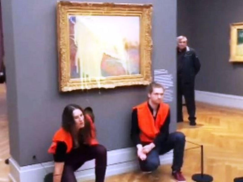Almaniyanın Potsdam şəhərindəki Barberini muzeyində iki ekofəal Klod Monenin "Ot tayaları" əsəri üzərinə kartof püresi atıblar.