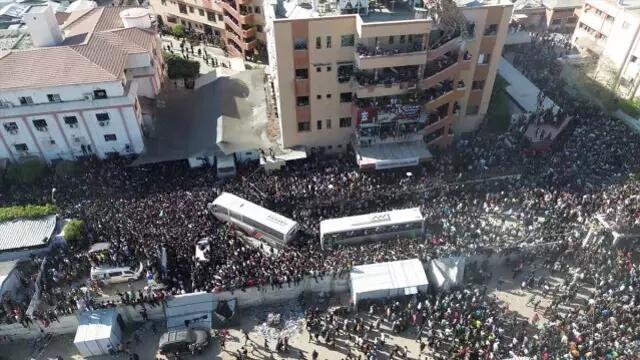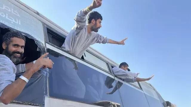 Milli.Az xarici mətbuata istinadən xəbər verir ki, azad edilən əsirlər Beynəlxalq Qızıl Xaç Komitəsinin vasitəçiliyi ilə Kerem Əbu Salim sərhəd-keçid məntəqəsindən avtobuslarla Qəzzəyə gətirilib.