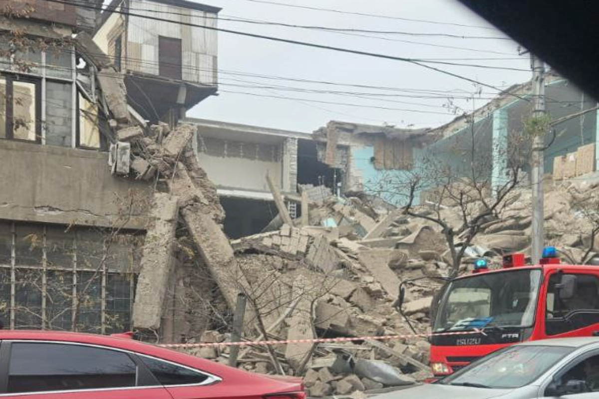 Hadisə yerinə gələn xilasedicilər üçmərtəbəli binanın bir hissəsinin (təsərrüfat malları və ərzaq anbarı) dağıldığını aşkar ediblər.