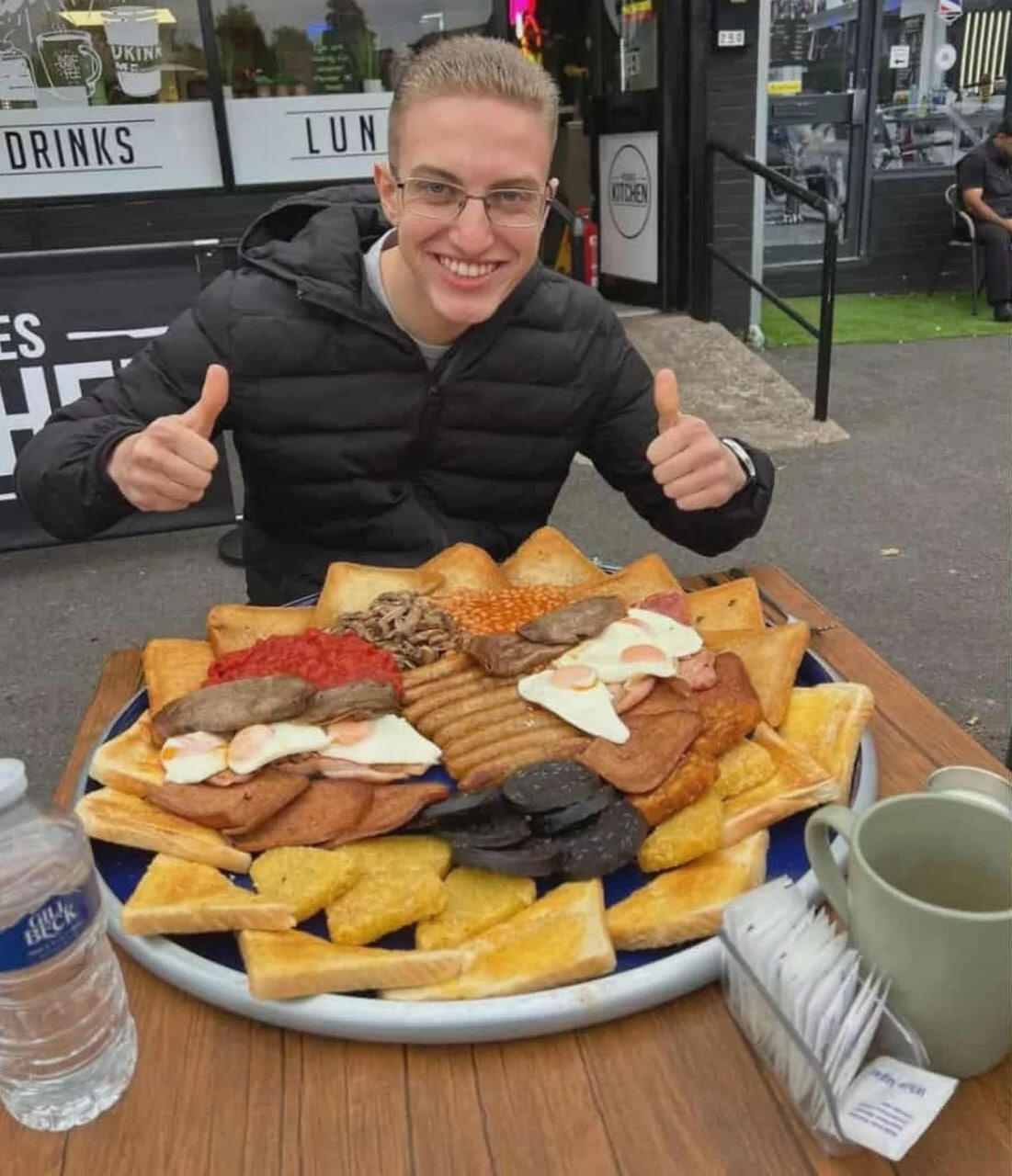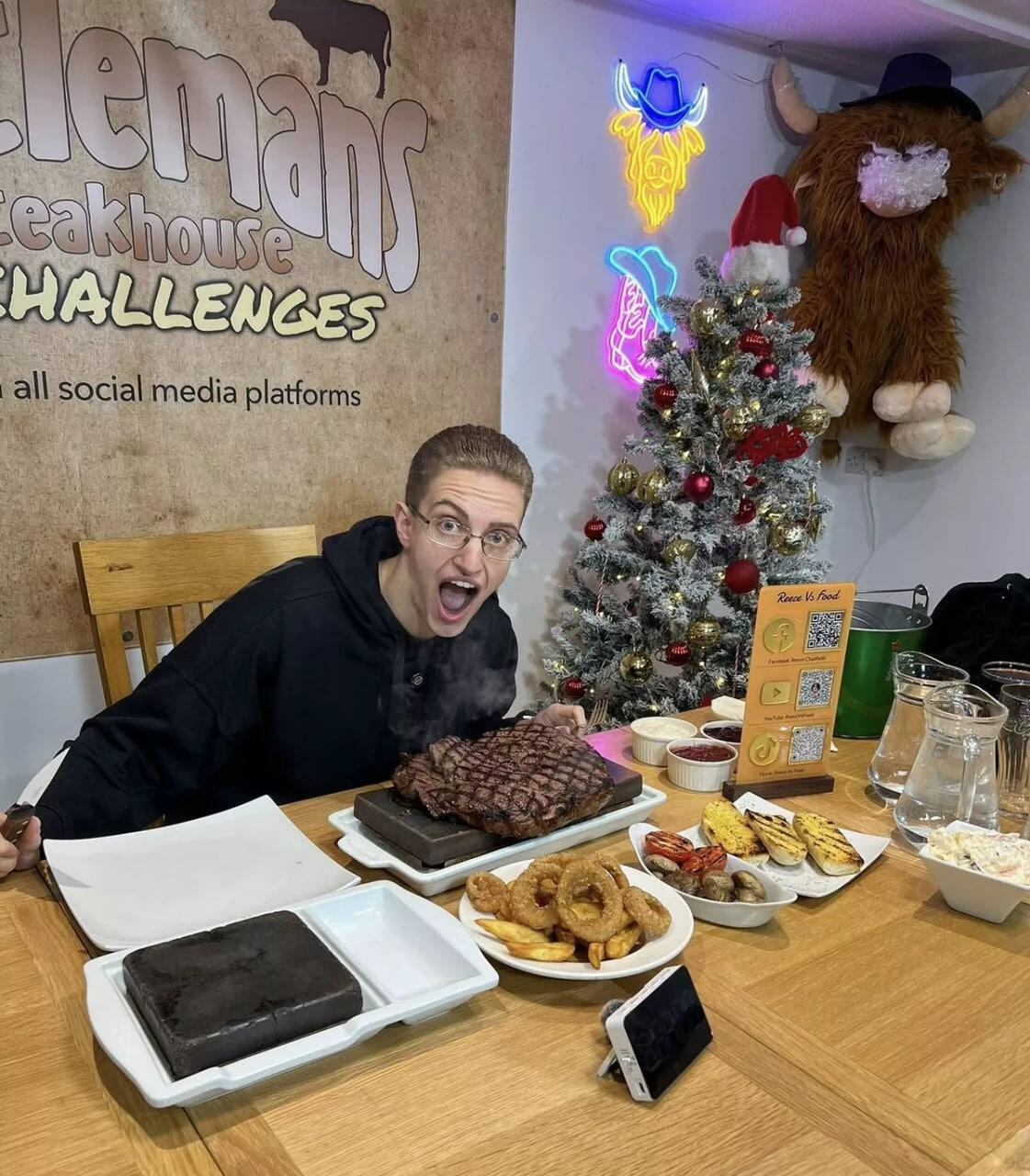 Milli.Az xəbər verir ki, iki gün ərzində o, bir neçə kiloqram ət, balıq və 38 toyuq naqeti yeyib, 36 dəqiqə ərzində isə o kafelərin birində iki kiloqram steyk udub.