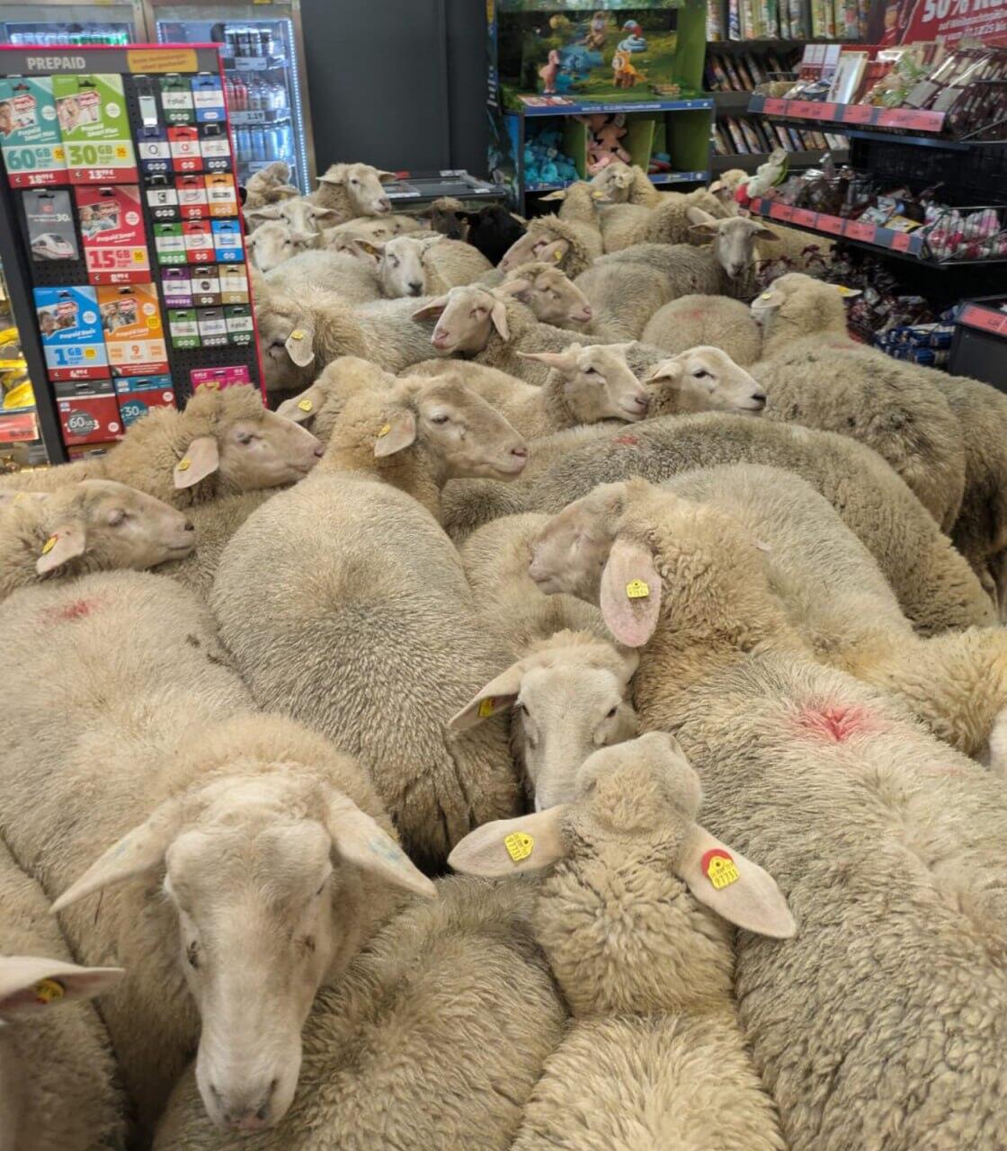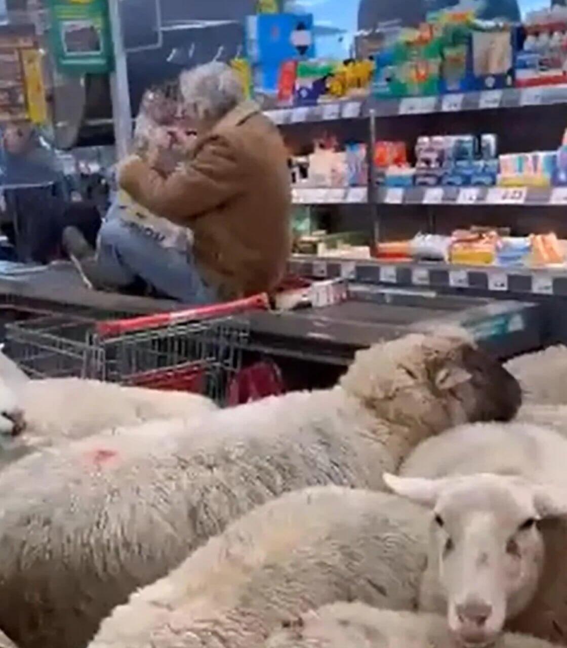 Milli.Az xəbər verir ki, qeyri-adi hadisə zamanı onlarla ac qoyun yemək axtarışı ilə supermarketə daxil olub. Heyvanlar mağazanın içində gəzərək tərəvəz və çörək məhsullarını yeyiblər.