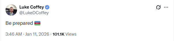 Azərbaycan bayrağı fonunda cəmi iki söz - "Be prepared" ("Hazır olun"). Bu qısa, amma son dərəcə sarsıdıcı mesaj ABŞ-də diqqətlə izlənilən analitik, təhlükəsizlik strateqi Lyuk Koffi tərəfindən "X" platformasında paylaşılıb və dərhal ciddi müzakirələrə səbəb olub.