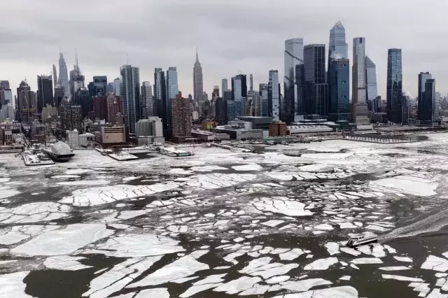 ABŞ-nin Nyu-York şəhərində güclü qar və rekord dərəcədə aşağı temperatur nəticəsində məşhur Hudzon çayının bəzi hissələri donub, suyun üzərində nəhəng buz kütlələri yaranıb.