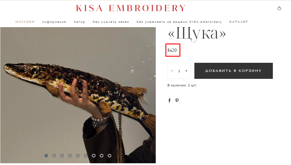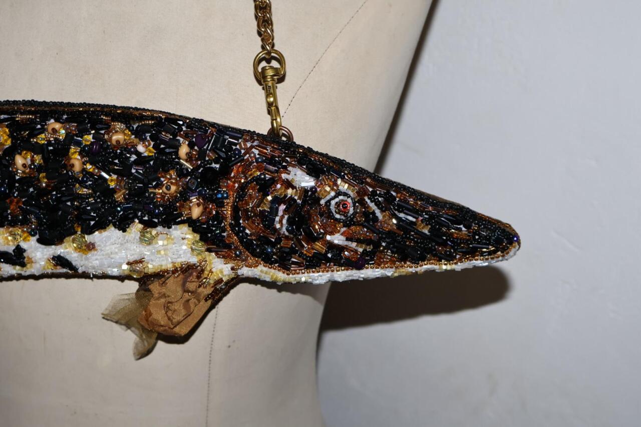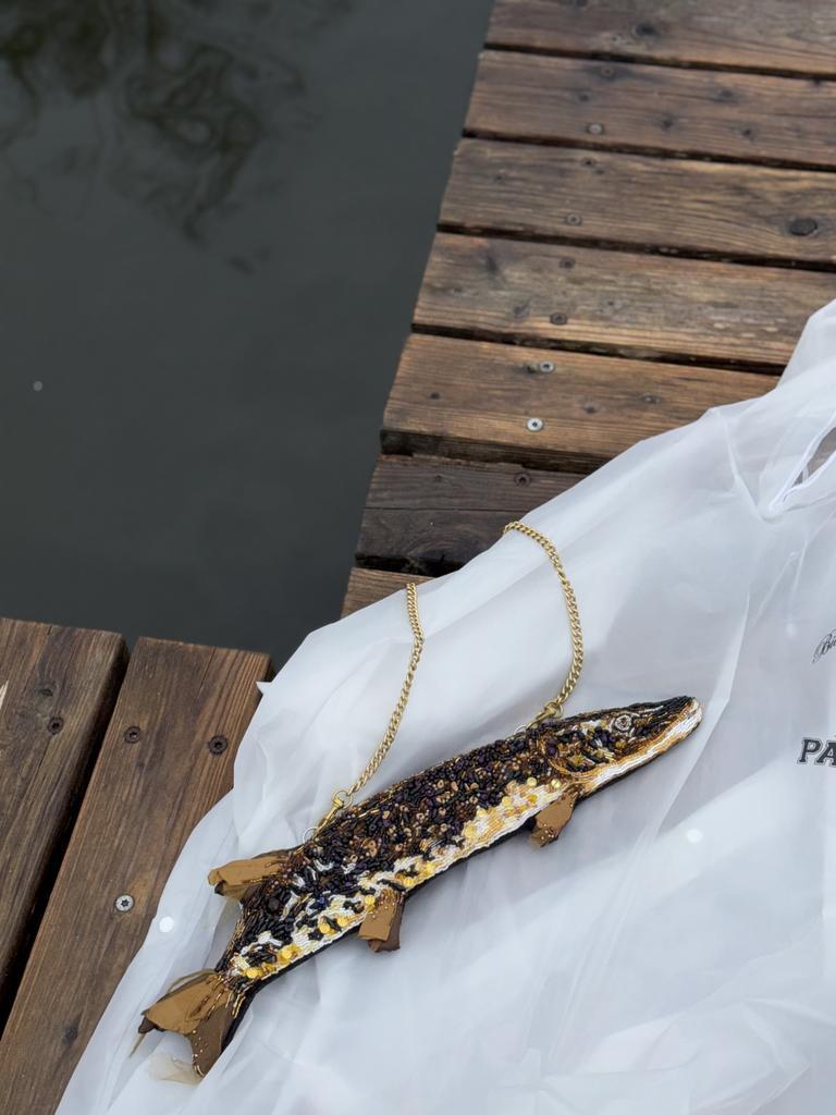 Milli.Az xəbər verir ki, "Kisa Embroidery" brendi bu dəfə durnabalığını xatırladan, tamamilə muncuq işləməli mini çanta ilə maraq doğurub. İlk baxışdan dekorativ sənət nümunəsini xatırladan aksesuar, əslində, brendin satışa çıxardığı ən fərqli modellərdən biridir. Rəsmi mağazada bu xətt üzrə balıq motivli modellərin müxtəlif versiyaları yer alır; pike motivli mini model 420 dollar qiymətlə göstərilir, ayrıca 40 və 55 sm ölçü seçimi olan fish/pike seriyası da təqdim olunur.
