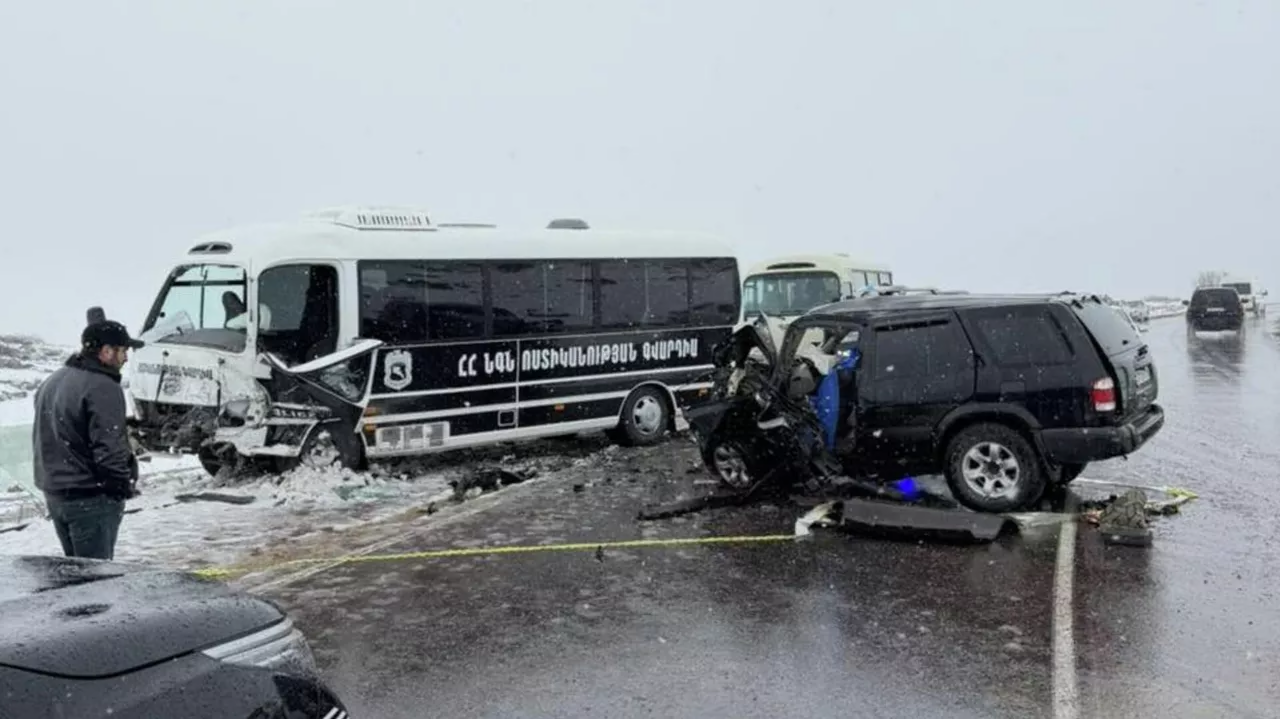 Ermənistanın Baş naziri Nikol Paşinyanın kortejini müşayiət edən polis avtobusu qəzaya düşüb.