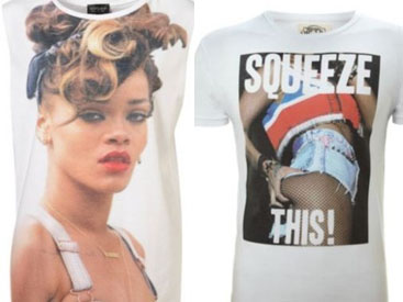 "Topshop"da satışa çıxarılmış yeni maykalarda Riannanın baldırının fotosu və "Squeeze This!" ("Sıx bunu!") yazısı var.