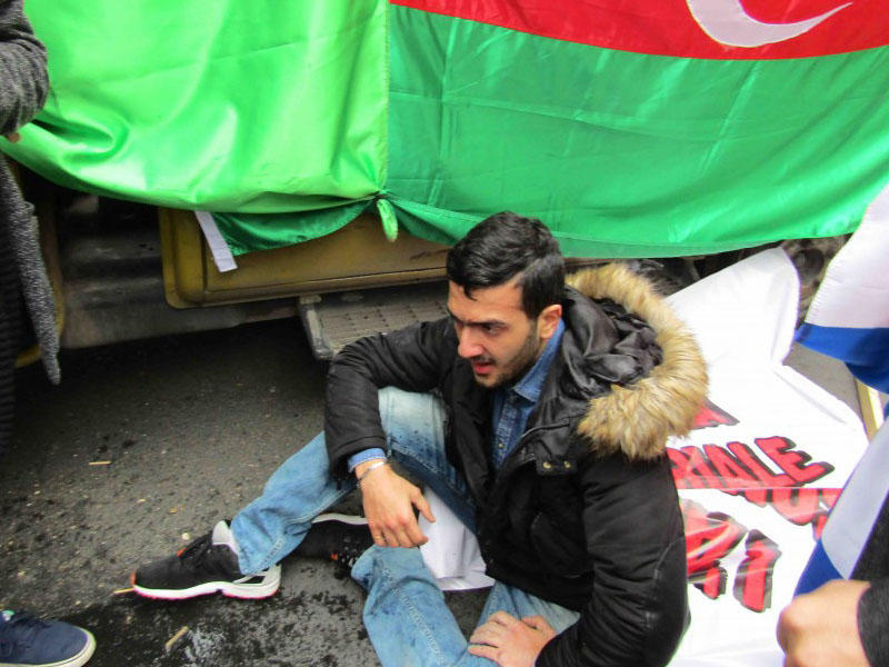 Parisdə yaşayan azərbaycanlı sənətçi Etibar Əsədlinin Facebook-da yaydığı məlumata görə, aksiyaya qatılmış soydaşlarımıza ermənilər hücum etməyə çalışıblar. Toqquşma olub. Yaralıların olduğu iddia edilir.