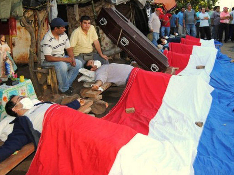2014-cü ildə Paraqvayda işdən haqsız yerə çıxarıldıqlarını düşünən üç avtobus sürücüsü etiraz məqsədilə əllərini mismarlayır. Onlardan biri, Klemente Lovera isə bununla yanaşı ağzını da tikdirir. İki uşaq atası aksiya zamanı saman çöpü vasitəsilə yedizdirilir.