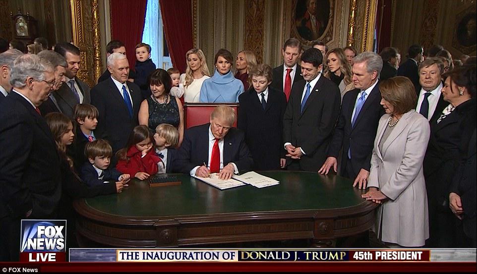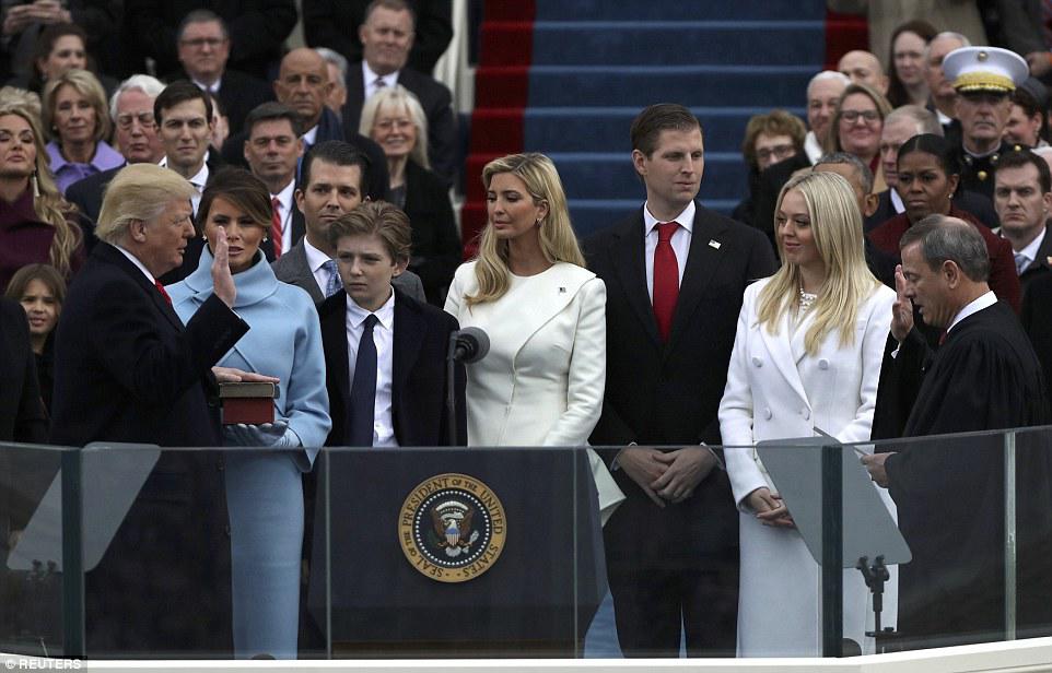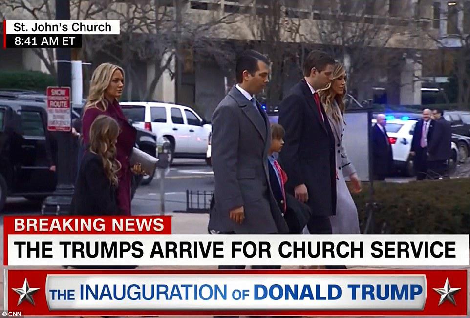 Donald Trampın oğlu Donald xanımı Vanessa və iki övladı, digər oğlu Erik isə xanımı Lara isə birlikdə mərasimdə idilər.