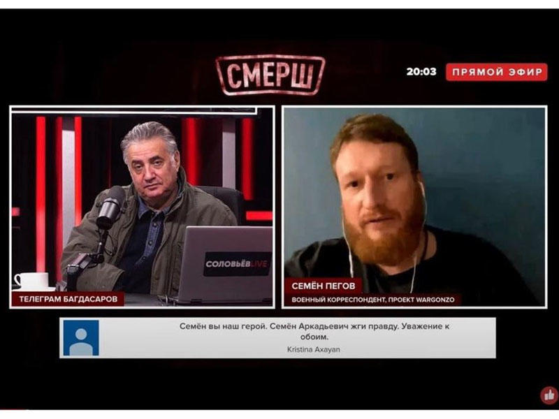 Bəzi kütləvi informasiya vasitələrində və sosial media səhifələrində "WarGonzo" layihəsinin müəllifi Rusiya Federasiyasının vətəndaşı Semyon Vladimiroviç Peqovun "SolovyovLive" verilişində Yaxın Şərq və Orta Asiya Araşdırmaları Mərkəzinin direktoru Rusiya Federasiyasının vətəndaşı Semyon Arkadeviç Baqdasarovla "Dağlıq Qarabağ və ətraf rayonların işğaldan azad edilməsi" mövzusunda birgə apardıqları videoformatlı müzakirə zamanı ermənilərin məğlubiyyətlə barışmayaraq Qarabağdakı Azərbaycan əsgərlərinə hücumlar edilməsi, müxtəlif döyüş əməliyyatlarının hazırlanması, partizan müharibəsinin başlayacağı barədə proqnozlar vermələri, bununla bağlı müəyyən məlumatlarının olması və müxtəlif üsullarla təxribat xarakterli ifadələrə yol vermələri müəyyən edilmişdir.